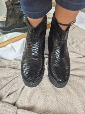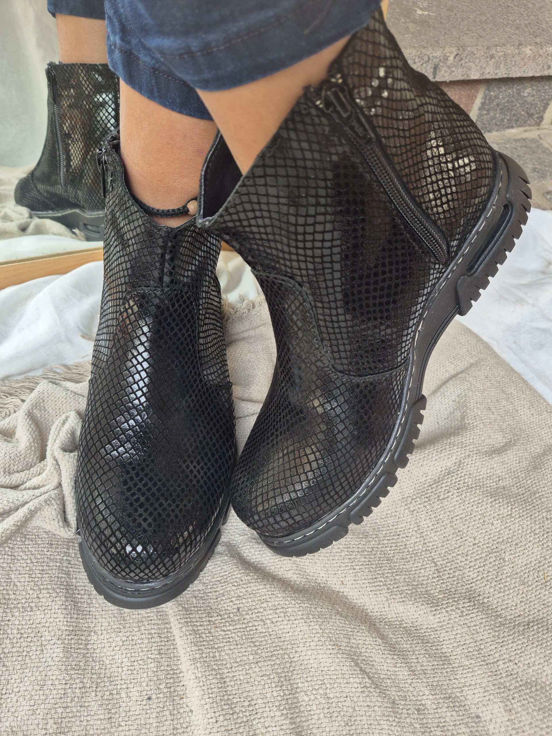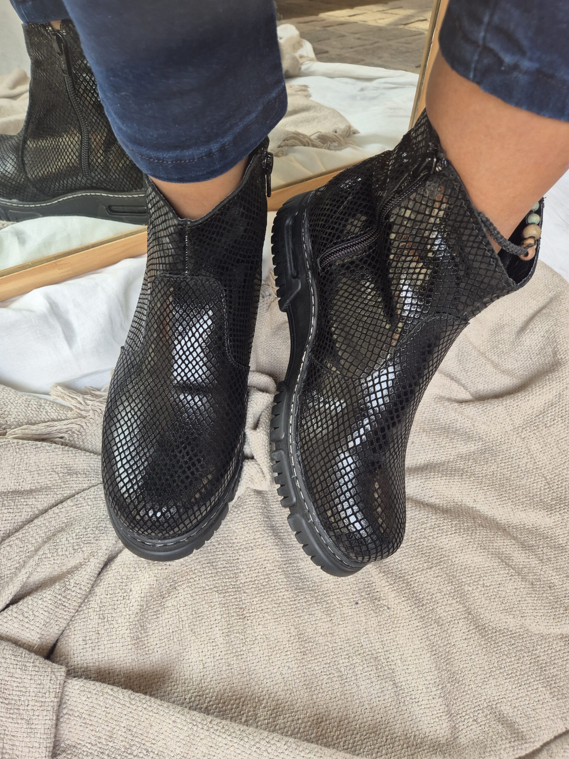 Nuestra bota cuenta con una base de goma adherente, flexible y con cámara de aire, ofreciendo una comodidad excepcional. El interior está forrado en cuero y tela, garantizando una ventilación adecuada para mantener tus pies secos. Además, dispone de dos cierres que permiten una doble apertura, facilitando su uso. Si tienes pies anchos y te cuesta encontrar calzado adecuado, este producto es perfecto para ti, ya que se adapta a todo tipo de pie.