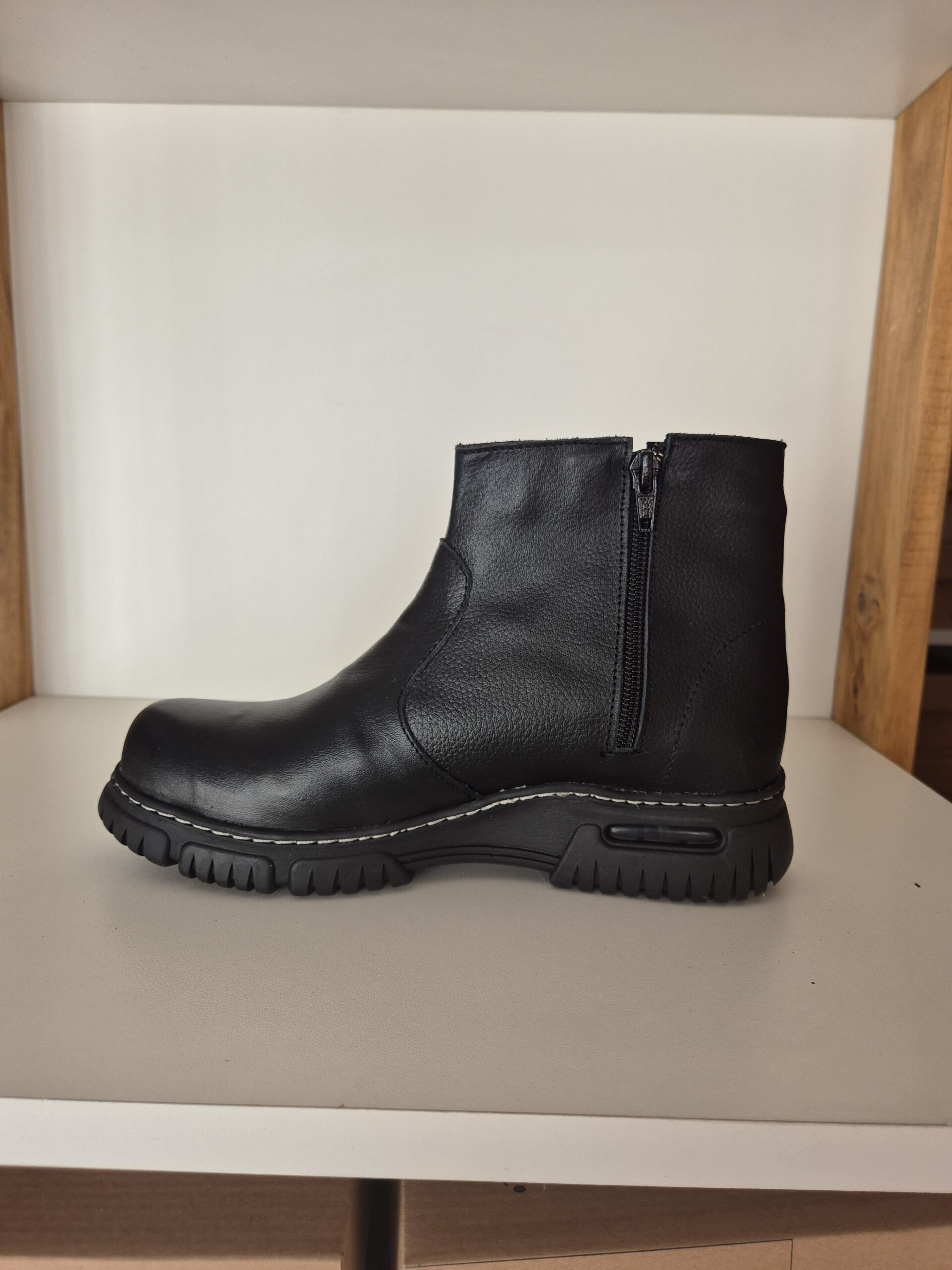 Nuestra bota cuenta con una base de goma adherente, flexible y con cámara de aire, ofreciendo una comodidad excepcional. El interior está forrado en cuero y tela, garantizando una ventilación adecuada para mantener tus pies secos. Además, dispone de dos cierres que permiten una doble apertura, facilitando su uso. Si tienes pies anchos y te cuesta encontrar calzado adecuado, este producto es perfecto para ti, ya que se adapta a todo tipo de pie.